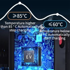 Intelligent temperature control, temperature higher than 85°C automatically stop charging, temperature bellow 60°C automatically start charging.