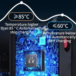 Intelligent temperature control, temperature higher than 85°C automatically stop charging, temperature bellow 60°C automatically start charging.