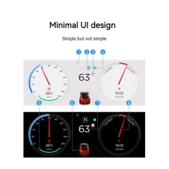Sync Information : automatically synchronizes with the information on the original car central control screen, such as vehicle speed/gear/electricity/light status/door information/safety distance/speed limit warning/tire abnormal pressure warning, etc