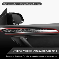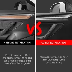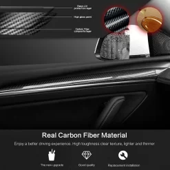 2-【Carbon Fiber Cover 】Our dash and front door cover wrap cap for model 3/Y is made of 3K real carbon fiber material, you don’t have to worry about any bubbles and deformation, it can effectively prevent fingerprints and scratches, Rugged and built to keep your tesla Model 3/Y cleaner.
