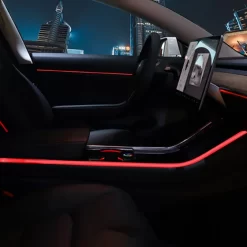 Tesla Model 3 Y Interior Car Neon Lights (Center Console+Dashboard+Seat Back+4 Foot Lights) with Matching Armrest Organizer, Tesla Ambient Lights